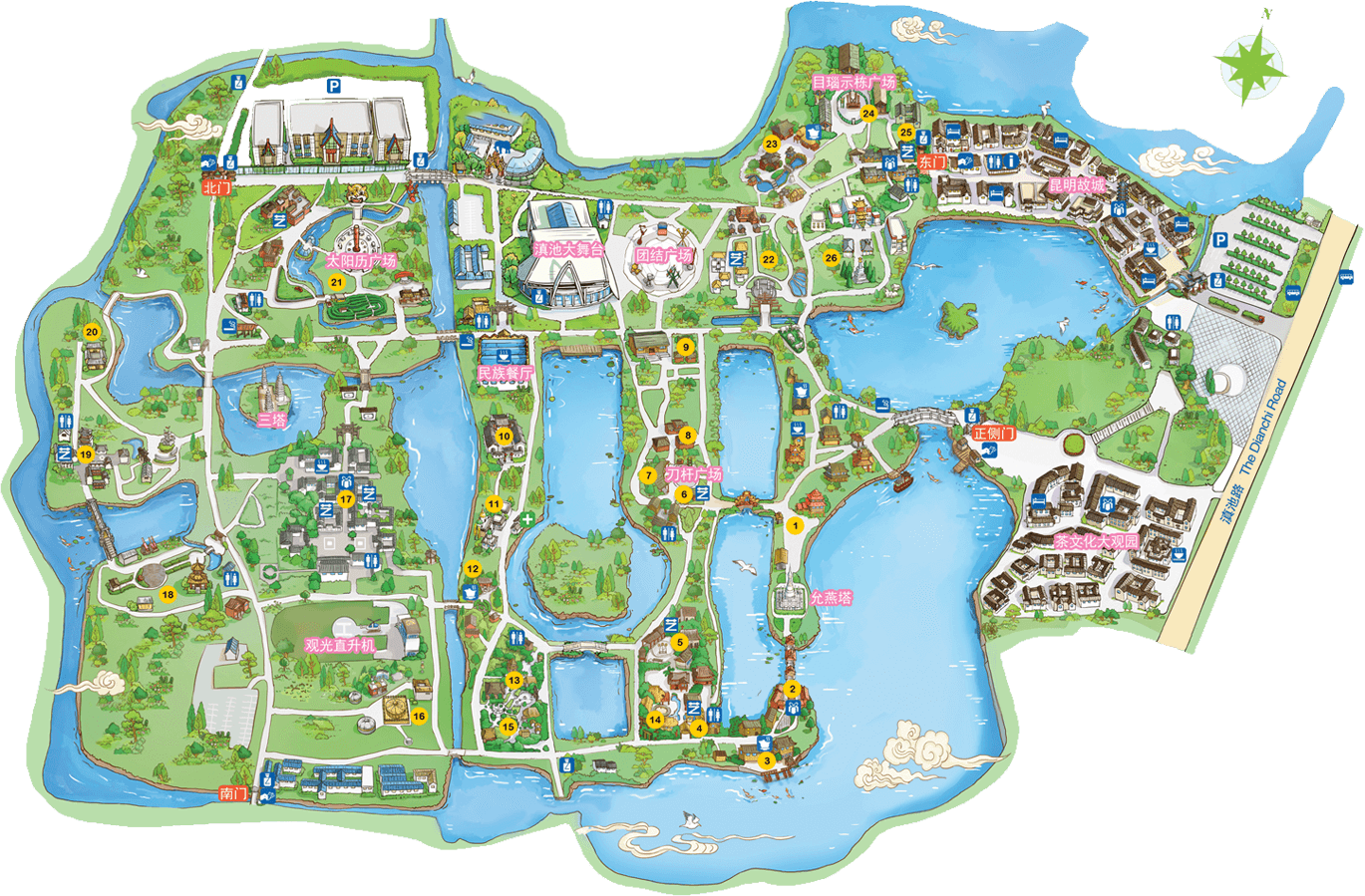 哈尼族是我國西南邊疆歷史悠久的農(nóng)耕民族,人口約130余萬,主要居住在云南省紅河、元江、瀾滄江流域的無量山區(qū)和哀牢山區(qū)。哈尼寨占地15畝,展現(xiàn)了最具有代表性的蘑菇房和愛尼母子房,日月廣場(chǎng);有表現(xiàn)哈尼族關(guān)于魚生萬物傳說的大型浮雕,有表現(xiàn)哈尼族遷徙傳說的圖騰柱;有體現(xiàn)生產(chǎn)生活的磨房、龍巴門、秋千場(chǎng)、梯田;寨神樹和祭石表現(xiàn)了哈尼族“萬物有靈、多神崇拜”的宗教信仰。哈尼傳統(tǒng)的節(jié)日有“年首扎勒特”、“苦扎扎”...